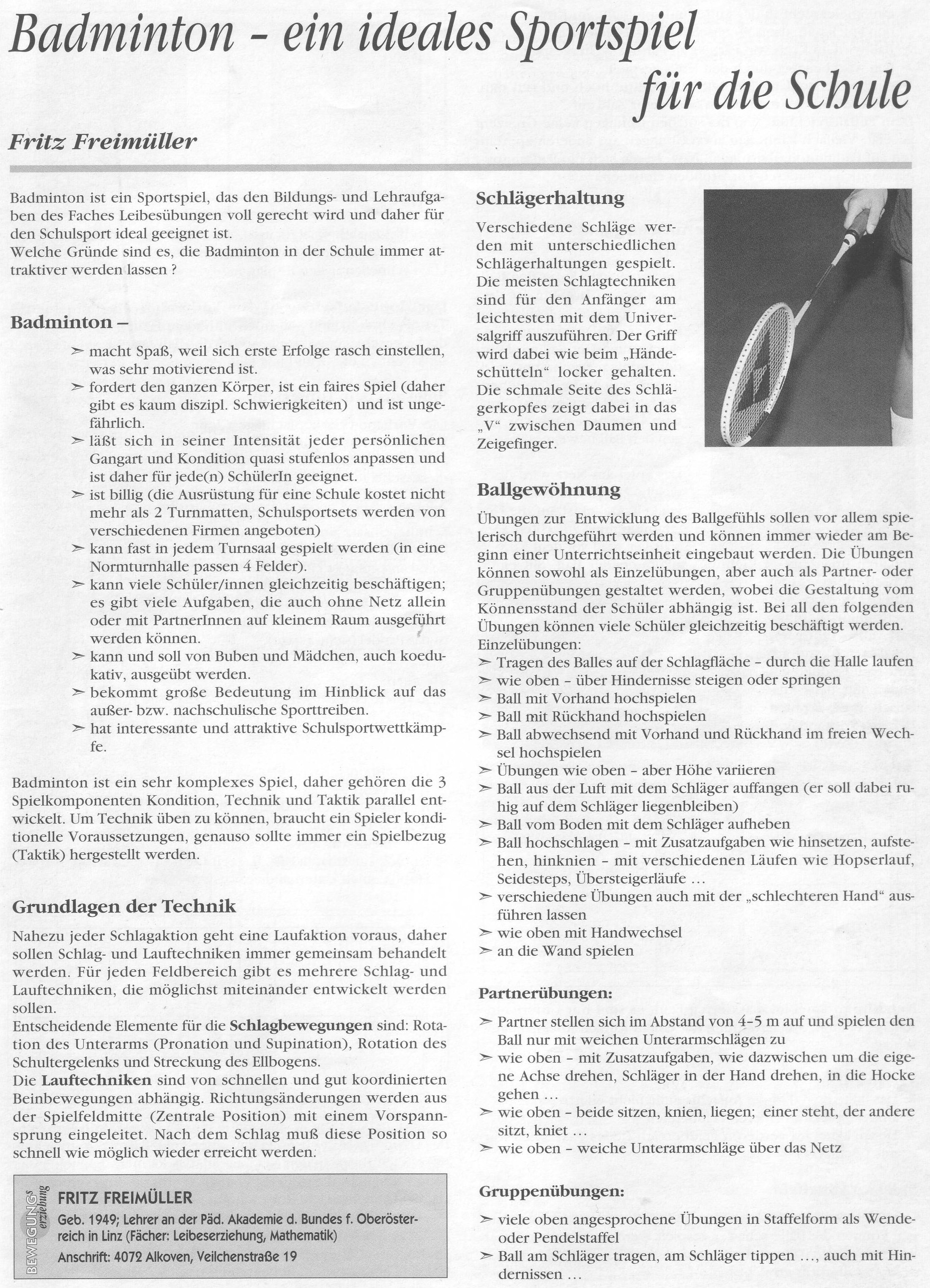 - Skriptum - Badminton in der Schule